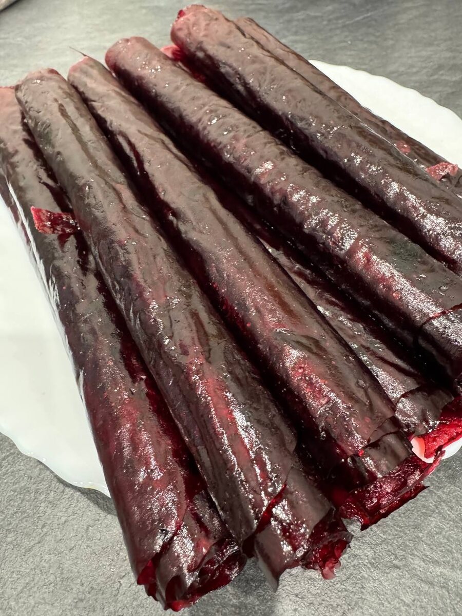 Компоты, джемы, пирожки, булочки, варенье, сушка и... Пастила🔥❤️ Пастила из слив. Нам понадобится: На 1 кг слив 100 г сахара Сливы промыть, обсушить удалить косточки. Сложить в кастрюлю и проварить до мягкости. Проблендерить погружным блендером. Далее опять довести до кипения и добавить сахар. Зависит от самих слив и ваших вкусовых предпочтений. Варить 15 минут. Остудить и выложить на поддоны для пастилы равномерно толщиной 5-7 мм, предварительно смазав их немного растительным маслом. Если таких поддонов нет, то застелить сетчатые поддоны пергаментной бумагой и тоже смазать маслом. Отправить в сушку на 5-7 часов при температуре 55 градусов. В духовке: противень застелить пергаментом, смазанным маслом. Пюре из слив распределить равномерно. Духовку разогреть до 100 градусов. Сушить 4-6 часов со слегка приоткрытой дверцей. Хранить в стеклянной банке, жестяной коробке или пластиковом контейнере в темном и сухом месте при комнатной температуре (от 15 до 25 °C), чтобы она не от