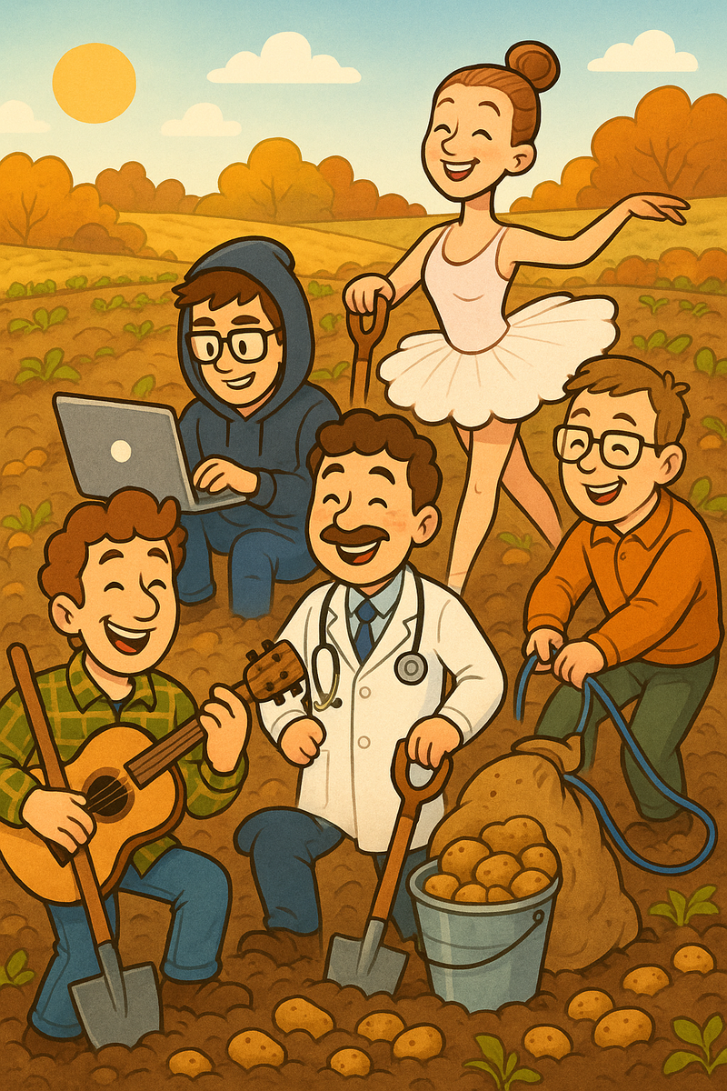 🍁 Каждую осень во всех рабочих чатах обсуждают один и тот же вопрос. Сисадмины и сценаристы, музыканты оркестров и врачи, учителя и бухгалтеры спрашивают друг у друга, кто сколько выкопал картошки и какой. 🥔 Вся страна делится на два лагеря: тех, кто копает картошку, и тех, кто смотрит на них и недоумевает.⠀ А у нас в Башкирии третий лагерь — те, для кого картошка не просто овощ, а национальная идея. ⠀ Кыстыбый? С картошкой. Эчпочмак? Естественно, с картошкой. Бәлеш? Вы угадали. Жизнь без картошки — ненастоящая жизнь. Покупать в магазине? Да вы что, это же невкусно! Только своя. Только с грядки. Только мешками.⠀В крайнем случае — купить на ярмарке. Моя личная история борьбы с картофельной гегемонией началась с клятвы: «Когда будет своя дача, НИКАКОЙ КАРТОШКИ!» ⠀ Я видела, как свекровь хранит стратегические запасы в погребе аж до лета. Помню, как мы в апреле, когда все нормальные люди уже едят свежую пустынную египетскую картошку, героически доедали прошлогоднюю, с душком погреба. ⠀ Н