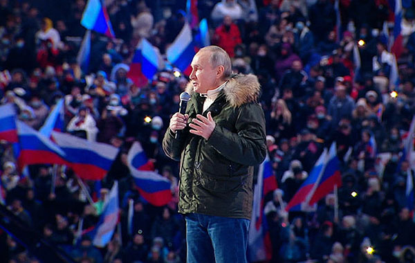 Пиар-проект по триумфальному возвращению в состав России полуострова Крым якобы ради безопасности 2 миллионов жителей, после чего 6 миллионов в Донбассе оказались вне закона, непризнанные никем, под обстрелами, а затем 1,5 миллиона были отправлены на войну, и до сих пор неизвестно, сколько из них вернётся домой.