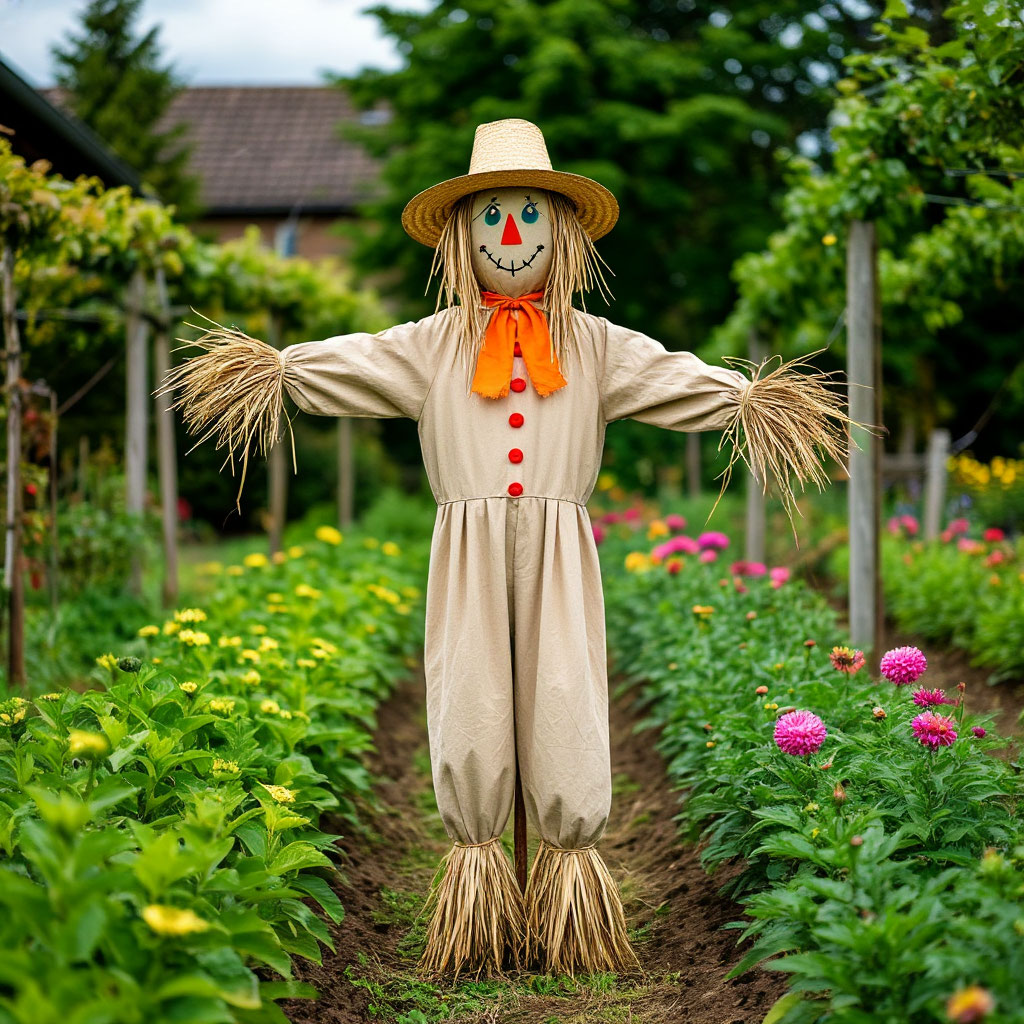 Это самое распространенное и опасное заблуждение. Пугало не является универсальным репеллентом. Вороны — умные и осторожные птицы. Они быстро изучают неподвижный объект и понимают, что он не представляет угрозы. А вот для мелких птиц, воробьев или скворцов, человеческая фигура может быть изначально пугающей. Но и они привыкают к нему за несколько дней. Пугало — не панацея, а лишь один из элементов защиты. Миф 2: Главное — чтобы было страшным