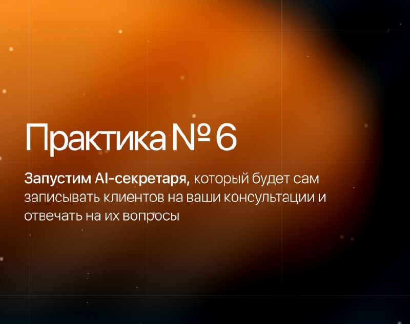 📞 Практика №6 в эфире! Запускаем AI-секретаря, который будет записывать клиентов и отвечать за вас. Ваш бизнес обретёт «железного офис-менеджера», который никогда не берет больничный 😉 Заходите на эфир‼️👉 https://xeniabaranova-school.ru/