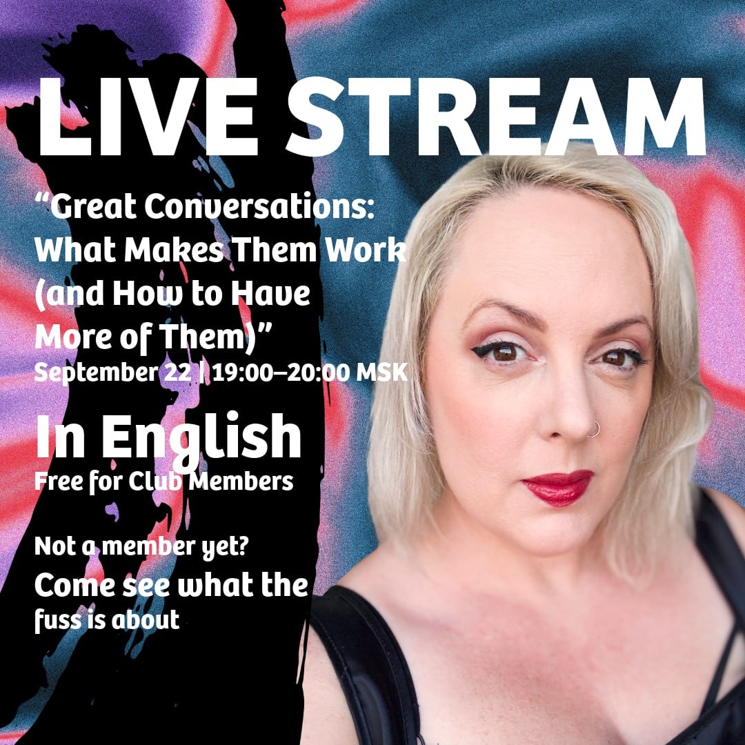 LIVE SESSION: HOW TO HAVE BETTER CONVERSATIONS IN ENGLISH 🗓 Monday, Sept 22 🕖 19:00–20:00 📍 Live on Zoom (link inside the Private Telegram Club) This isn’t a lesson. It’s a live session on how to have better conversations. Not just in English, but in general. I’ll walk you through some of the strategies I use in private sessions, and we’ll try them out together. If you want to sound more natural, keep a conversation going, and actually enjoy speaking English — come. You’ll get a feel for what working with me is like. You’ll practice your English in real time. You’ll learn something useful. Free for club members. Not in the club yet? Join here: t.me/joinlaurachat
