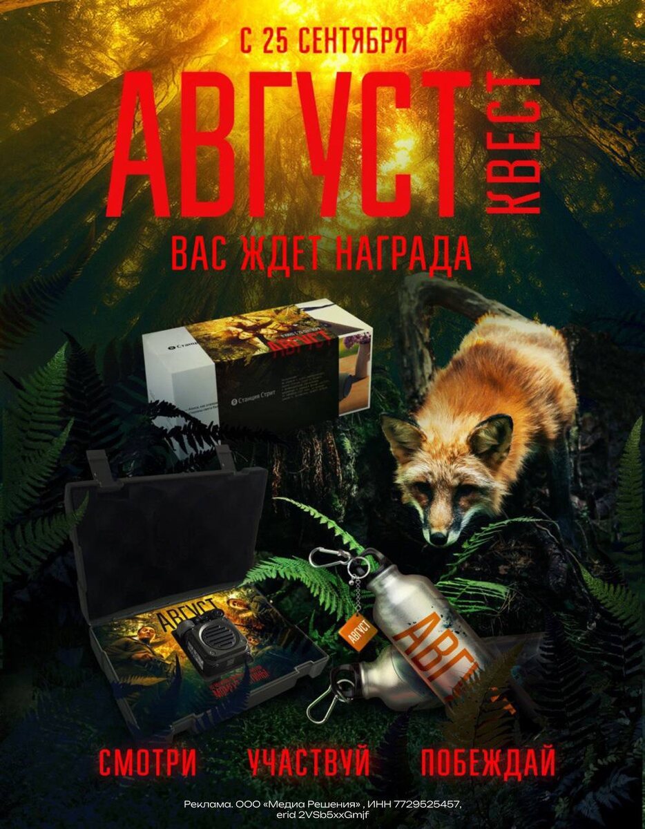 🥝🍅🍆🥑🥑 Бабушка приехала и, как полагается, не с пустыми руками❤️ Уже 25 сентября на большие экраны выходит историческая драма «Август» — новая экранизация романа «Момент истины» с Сергеем Безруковым, Никитой Кологривым и Павлом Табаковым в главных ролях. А мы запускаем квест-игру, где любой желающий сможет испытать удачу и выиграть ценные призы. Квест пройдет в три этапа: 1️⃣ раунд 16.09 по 23.09 Выберем 7 победителей, каждый из которых получит брендированную алюминиевую бутылку для воды с карабином. Победители: @dam0ma @juliavolkovaseven @Antonioo_95 @rainaak @Aswetaa89 @woodp3acker @pazniak1 2️⃣ раунд 24.09 по 30.09 Выберем 5 победителей, которые получат колонку MUZEN Wild Mini. Победители: @Mansur_Shakurow @Rinokmarinok @by_S_o_f_i_a @rap4rus @vallleeriiiiaaaa 3️⃣ раунд 01.10 по 08.10 Выберем 5 победителей, которые получат умную портативную колонку Яндекс Станция Стрит. Победители: @Kbltya @Almazon193 @Source54 @mmlekm @soonnechka Что же нужно делать? 🔴Активировать чат