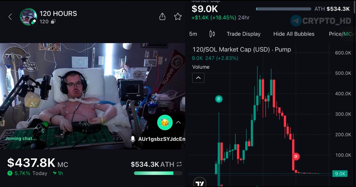🔞 Очередной скамер нагнул доверчивых криптанов… Стример Pump․Fun (#PUMP) с инвалидностью запустил токен «120 HOURS» – заявлял, что ему осталось жить всего 120 часов, даже не знает про rug pull и просто намерен собрать немного денег для своей семьи. Инвесторы поверили и разогнали капитализацию токена до $500,000. Создатель заработал более $14,000 на комиссиях. …но затем вырубил стрим и исчез. Ранее: трейдер Gainzy Crypto Headlines