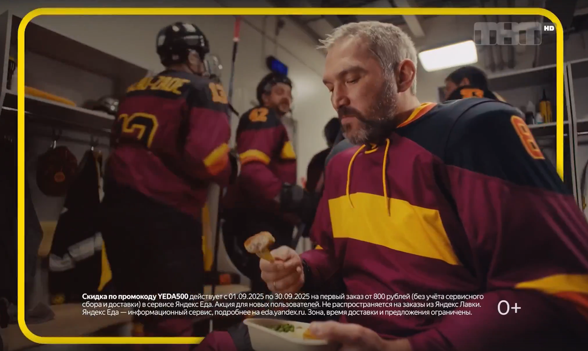 Реклама Яндекс Еда — Утолит любой голод (Александр Овечкин) (2025)