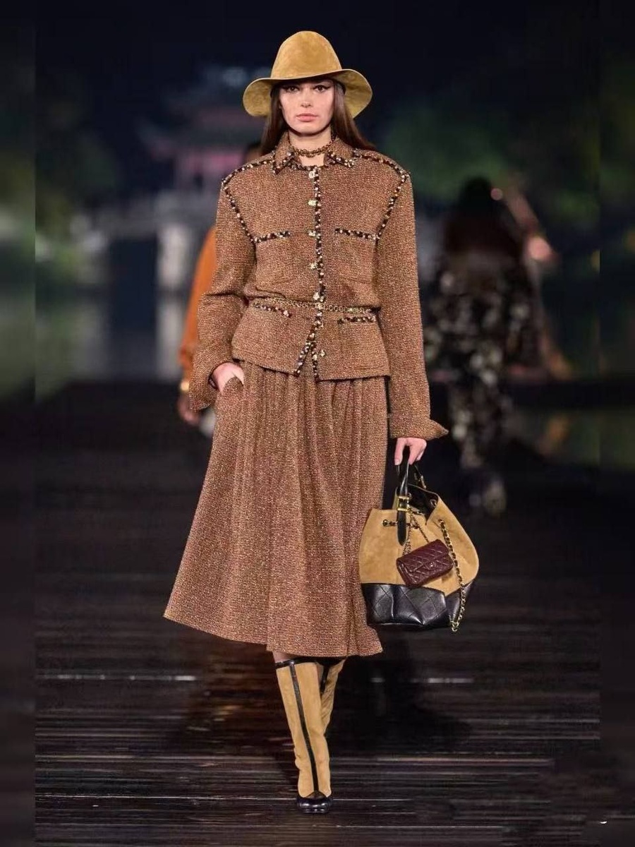 Великолепный жакет, юбка, а также эта супер красивая сумка и сапожки к ней #chanel ⚡️