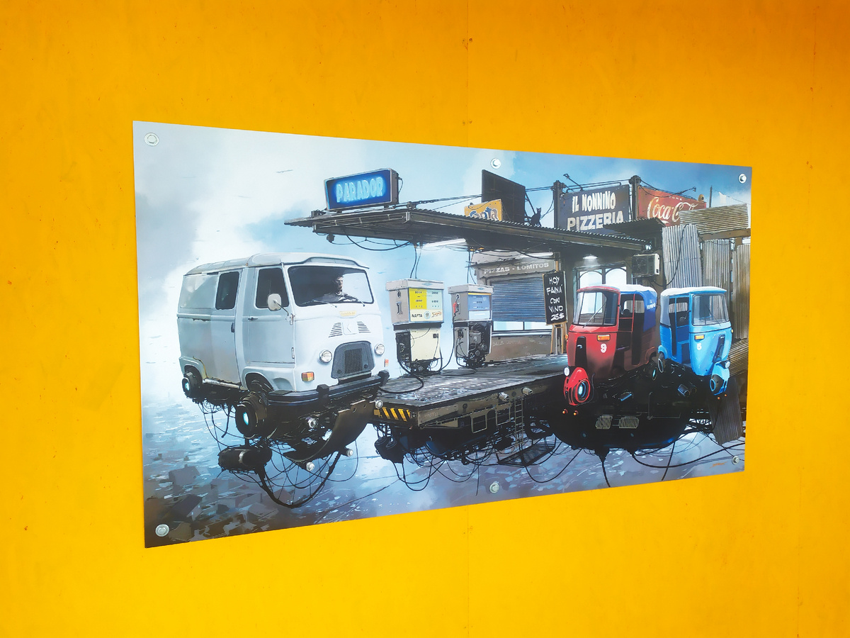 На автозаправке в Малой Вергунке (часть Луганска) по улице Дачная № 2 можно увидеть картины с фантастическими летающими автозаправками и такими же фантастическими автомобилями. "Автомобили сочетают ретро-дизайн, обшарпанность и некоторую лачугость разнообразных заправок и забегаловок, к которым швартуются транспортные средства, с тщательно прорисованными устройствами для полета На Иных Физических Принципах". На автозаправке имеется четыре картины с фантастическими заправками их создатель Алехандро Бурдисио (Alejandro Burdisio, Кордова, Аргентина) - художник и настоящий маэстро научной фантастики, рисующий красочные иллюстрации летающих городов и курсирующих по их улочкам автомобилей с антигравитационными двигателями. Разумеется, рисует Бурдисио не только это. Он творит и в других научно-фантастических сеттингах, однако автопарки небесных городов — наиболее часто встречающаяся в его творчестве тема. И это, в целом, неудивительно — города получаются настолько яркими и поражающими воображ