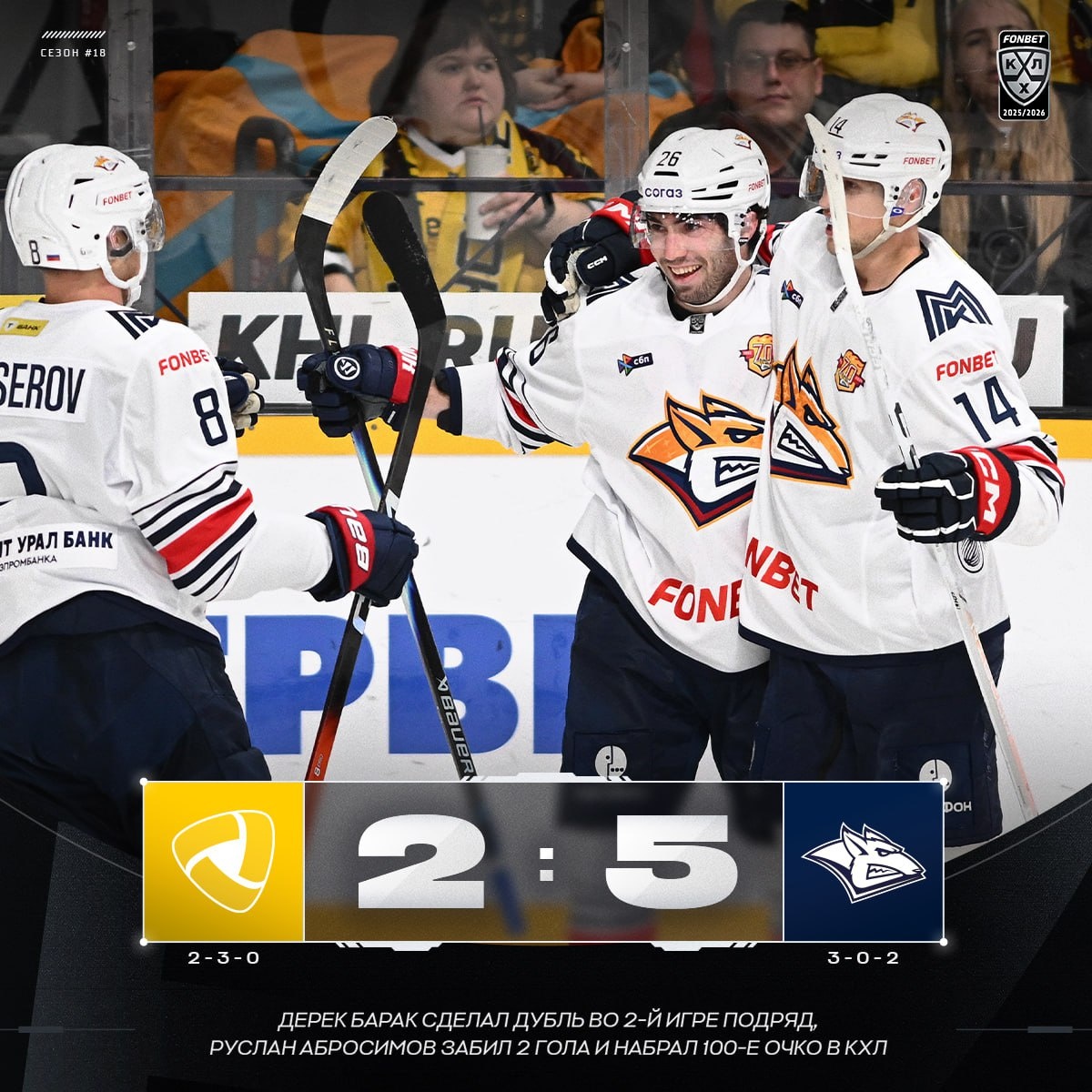 🦊 Дубль Дерека Барака принес «Металлургу» первую за пять сезонов победу в Череповце! #ФонбетКХЛ
