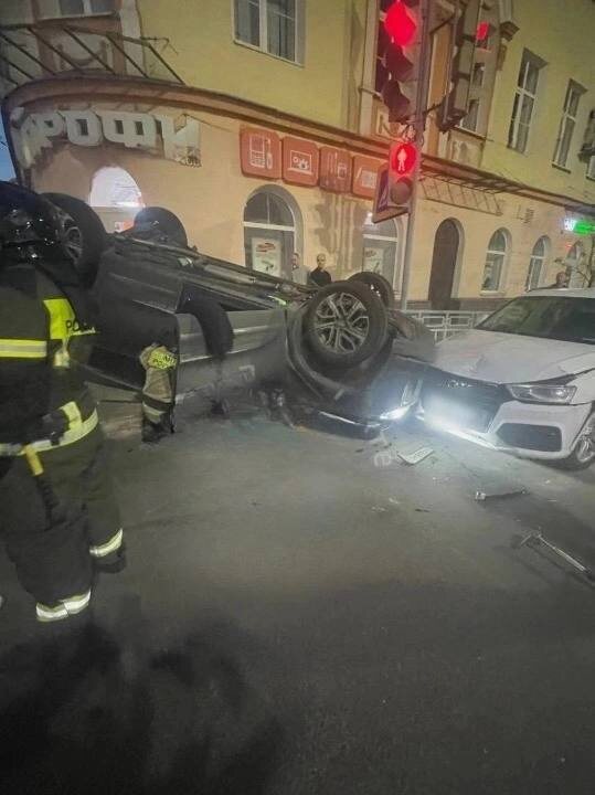 На перекрестке улиц Фридриха Энгельса и Плехановской произошло серьезное дорожно-транспортное происшествие с переворачиванием автомобиля