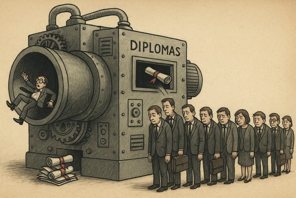 Сегодняшняя система настроена так, чтобы концентрировать выгоду в руках топ-менеджеров, акционеров и политиков, которых они лоббируют, в то время как все риски и неопределённость ложатся на плечи обычных людей. Очередной сертификат об окончании курсов не решит этих системных проблем, заложенных в самой структуре современного капитализма.