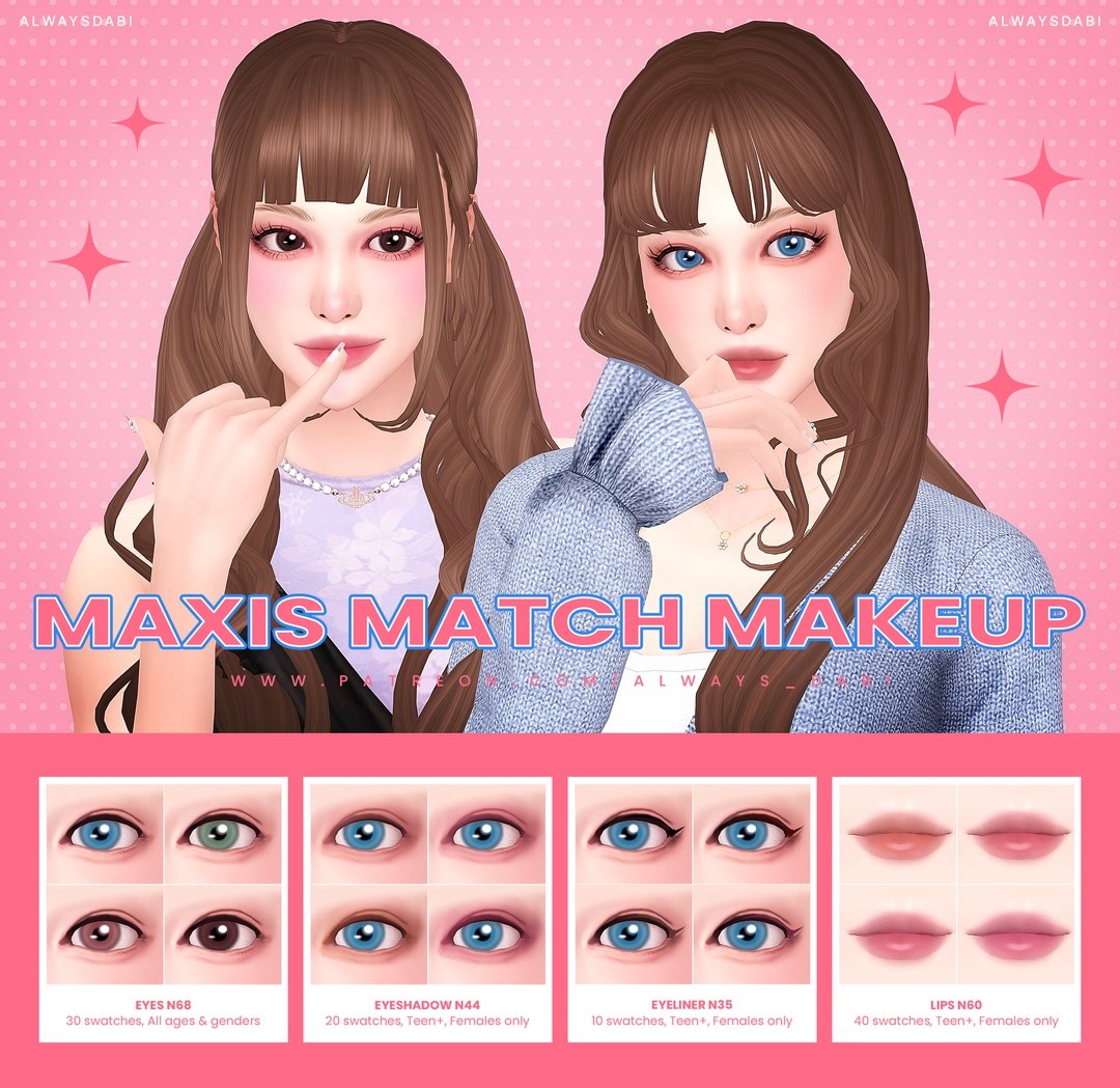 Скачать мод Maxis match makeup set для The Sims 4 - #Макияж@simsfans_ru Погрузитесь в мир виртуального грима с набором Maxis Match от AlwaysDabi, который включает в себя всё необходимое для создания идеального образа вашего сима — от выразительных линз до стойкой помады. Этот макияж идеально сочетается со стилем игры, подчеркивая естественную красоту персонажей без нарушения гармонии визуала. Скачать: https://simsfans.ru/23637 #Sims4@simsfans_ru #симс4магия #симс4лоре