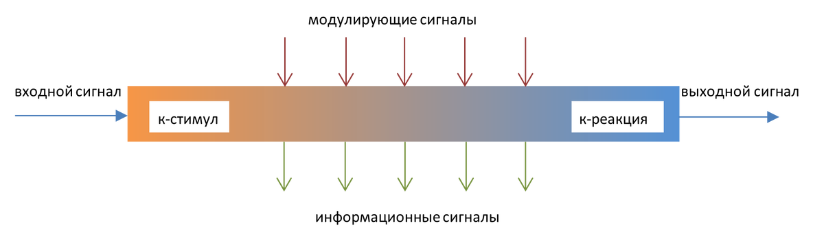 Кроме возбуждения а-стимула, с-реакция должна вызвать соответствующую инициализацию образа в СМО, а после успешной передачи сигнала в две системы, должна релаксировать в невозбуждённое состояние. В процессе прохождения с-конвейера он также может посылать некоторые информационные сигналы в САС, таким образом влияя на последующую работу а-конвейеров.