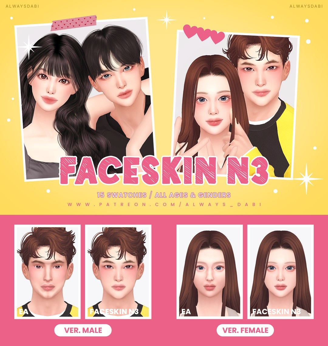 Скачать пользовательский мод Скин для лица - Face Skin N3 для Sims 4 - #Скинтон@simsfans_ru Новый скин для лица Face Skin N3 от автора AlwaysDabi добавит вашим персонажам The Sims 4 реалистичную текстуру кожи с естественным сиянием. Коллекция включает 15 универсальных образцов, которые идеально подойдут как для мужских, так и для женских симов. Скинтон отличается высокой детализацией и органично впишется в любую игровую эстетику. Скачать: https://simsfans.ru/23629 #Sims4@simsfans_ru #Sims4Worlds #Sims4History
