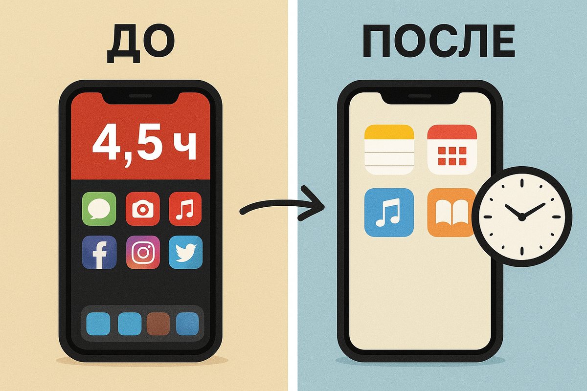 ΠΈΡΠΏΠΎΠ»ΡΠ·ΠΎΠ²Π°Π½ΠΈΡ ΡΠ΅Π»Π΅ΡΠΎΠ½Π° ΠΎΡΠ²ΠΎΠ±ΠΎΠ΄ΠΈΠ»ΠΎ Ρ ΠΌΠ΅Π½Ρ ΠΏΠΎΡΡΠΈ 3 ΡΠ°ΡΠ° Π² Π½Π΅Π΄Π΅Π»Ρ. ΠΠ°Π·Π°Π»ΠΎΡΡ Π±Ρ, Π΅ΡΡΠ½Π΄Π°, Π½ΠΎ Π½Π° Π΄Π΅Π»Π΅ ΡΡΠΎ ΠΈΠ·ΠΌΠ΅Π½ΠΈΠ»ΠΎ ΠΌΠΎΠΉ Π³ΡΠ°ΡΠΈΠΊ ΠΈ Π½Π°ΡΡΡΠΎΠ΅Π½ΠΈΠ΅. ΠΠ°ΠΊ ΠΈ ΠΌΠ½ΠΎΠ³ΠΈΠ΅, Ρ Π»ΡΠ±Π»Ρ Β«Π½Π° 5 ΠΌΠΈΠ½ΡΡ Π·Π°Π³Π»ΡΠ½ΡΡΡ Π² ΡΠ΅Π»Π΅ΡΠΎΠ½Β» β ΠΏΡΠΎΠ²Π΅ΡΠΈΡΡ Π»Π΅Π½ΡΡ, ΠΏΠΎΡΠΌΠΎΡΡΠ΅ΡΡ ΡΡΠΎΡΠΈΡ, ΠΎΡΠ²Π΅ΡΠΈΡΡ Π½Π° ΡΠΎΠΎΠ±ΡΠ΅Π½ΠΈΡ. ΠΠΎ ΡΡΠΈ Β«5 ΠΌΠΈΠ½ΡΡΒ» Π»Π΅Π³ΠΊΠΎ ΠΏΡΠ΅Π²ΡΠ°ΡΠ°Π»ΠΈΡΡ Π² ΡΠ°Ρ ΠΏΡΠΎΠΊΡΠ°ΡΡΠΈΠ½Π°ΡΠΈΠΈ. ΠΡΠΎΠ±Π΅Π½Π½ΠΎ Π²Π΅ΡΠ΅ΡΠΎΠΌ: Π²ΠΌΠ΅ΡΡΠΎ ΡΠΎΠ³ΠΎ, ΡΡΠΎΠ±Ρ Π»Π΅ΡΡ ΠΏΠΎΡΠ°Π½ΡΡΠ΅, Ρ Π±Π΅ΡΠΊΠΎΠ½Π΅ΡΠ½ΠΎ ΡΠΊΡΠΎΠ»Π»ΠΈΠ»Π° TikTok ΠΈ Reels. Π ΠΈΡΠΎΠ³Π΅ β Π½Π΅Π΄ΠΎΡΡΠΏ, ΡΡΡΠ°Π»ΠΎΡΡΡ ΠΈ ΠΎΡΡΡΠ΅Π½ΠΈΠ΅, ΡΡΠΎ Π΄Π΅Π½Ρ Β«ΡΠΏΠ»ΡΠ» Π² Π½ΠΈΠΊΡΠ΄Π°Β». Π ΠΊΠ°ΠΊΠΎΠΉ-ΡΠΎ ΠΌΠΎΠΌΠ΅Π½Ρ Ρ ΡΠ΅Π°Π»ΡΠ½ΠΎ ΡΠΆΠ°ΡΠ½ΡΠ»Π°ΡΡ: Π’ΠΎΠ³Π΄Π° Ρ ΡΠ΅ΡΠΈΠ»Π°: Ρ