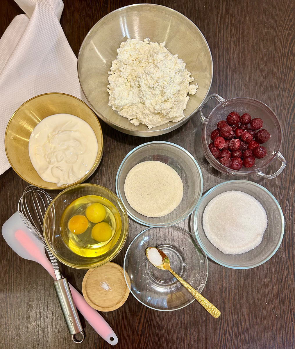 Здравствуйте! Я с удовольствием поделюсь с Вами рецептом творожной запеканки с вишней. Давайте начнём!