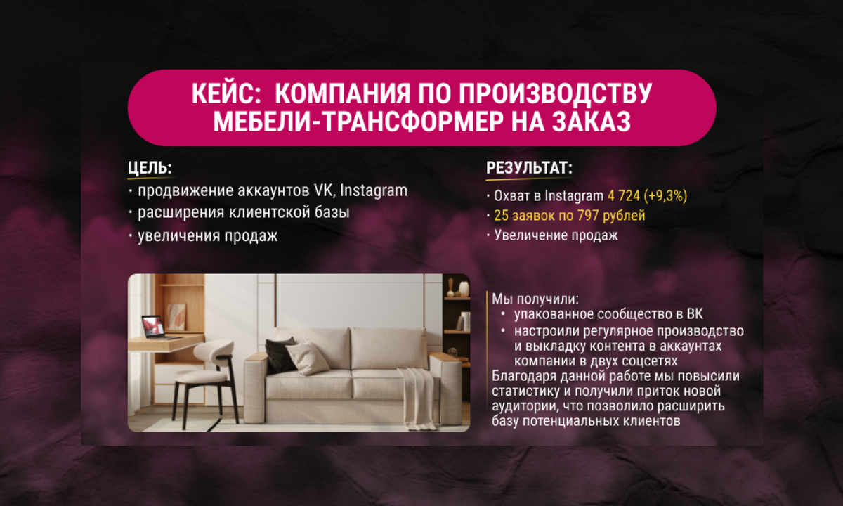 Сегодня хочу поделиться с вами кейсом по продвижению компании по производству мебели-трансформер на заказ в Москве.