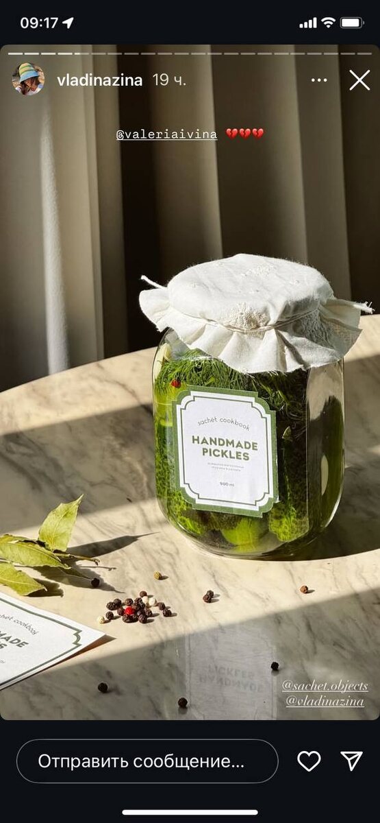 Вслед за Памелой Андерсон, которая выпустила соленые огурцы собственного приготовления, ингредиенты для засолки и рецепт разослала инфлюенсерам Влада Назина для запуска своего бренда декора для дома Sachet. И вот уже московские модные девушки солят огурцы (например, стилистка Аня Слоникова), а Влада работает над тем, чтобы набор из блогерской рассылки ввести в регулярный ассортимент бренда. Не иначе как консервация - новый люкс😎😎😎 @make_your_style
