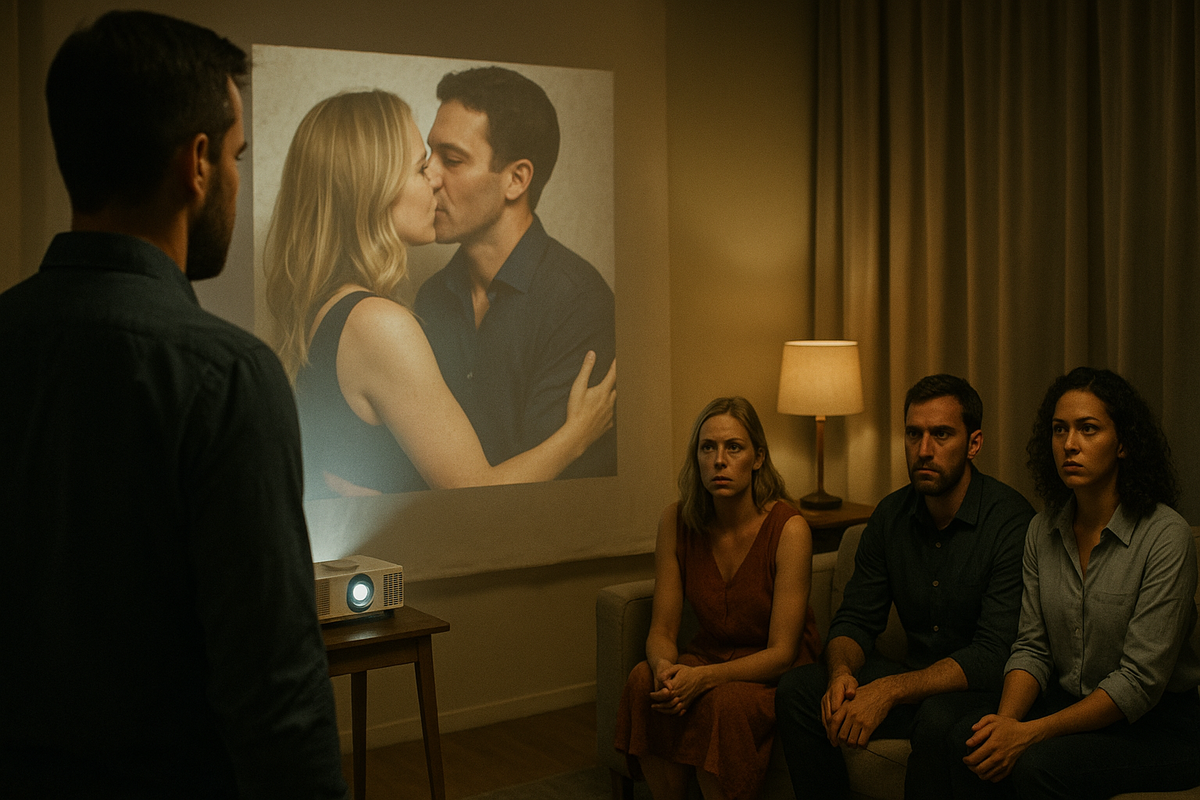 Друзей позвали на семь. Я пришёл с работы в шесть и первым делом проверил звук. Проектор тихо сопел, как сонный кот. Свет ложился ровно, белый прямоугольник казался окном, за которым небо арктическое и пустое.