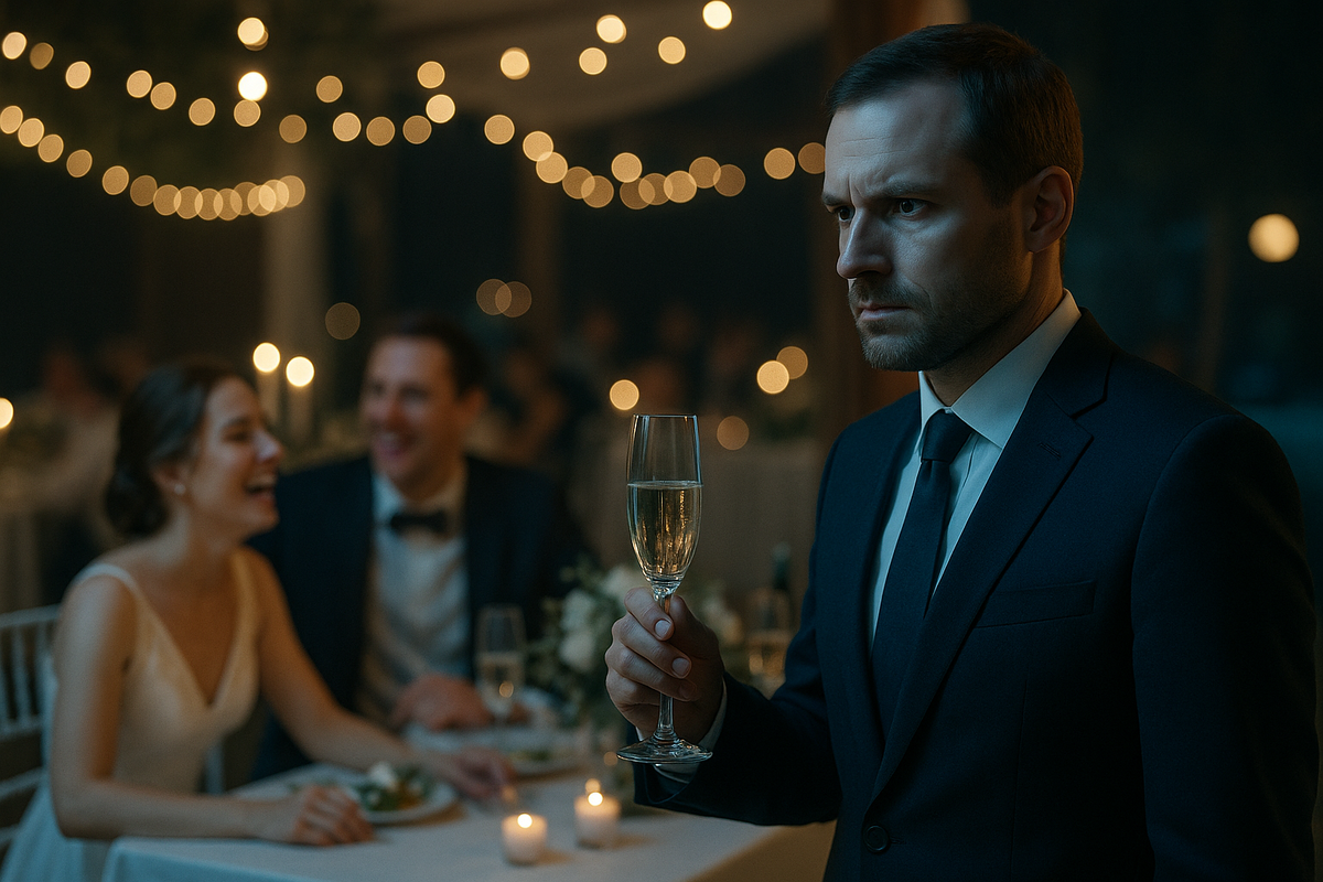 Лена смеялась с подружками у стойки. Свадьба была у наших общих друзей — Саши и Вики. Антон стоял на шаг в стороне, как положено «тем, кто уже был в этом шалаше»: улыбаешься, киваешь, ловишь взгляд жены через столы и по привычке считаешь, сколько бокалов осталось до тоста.