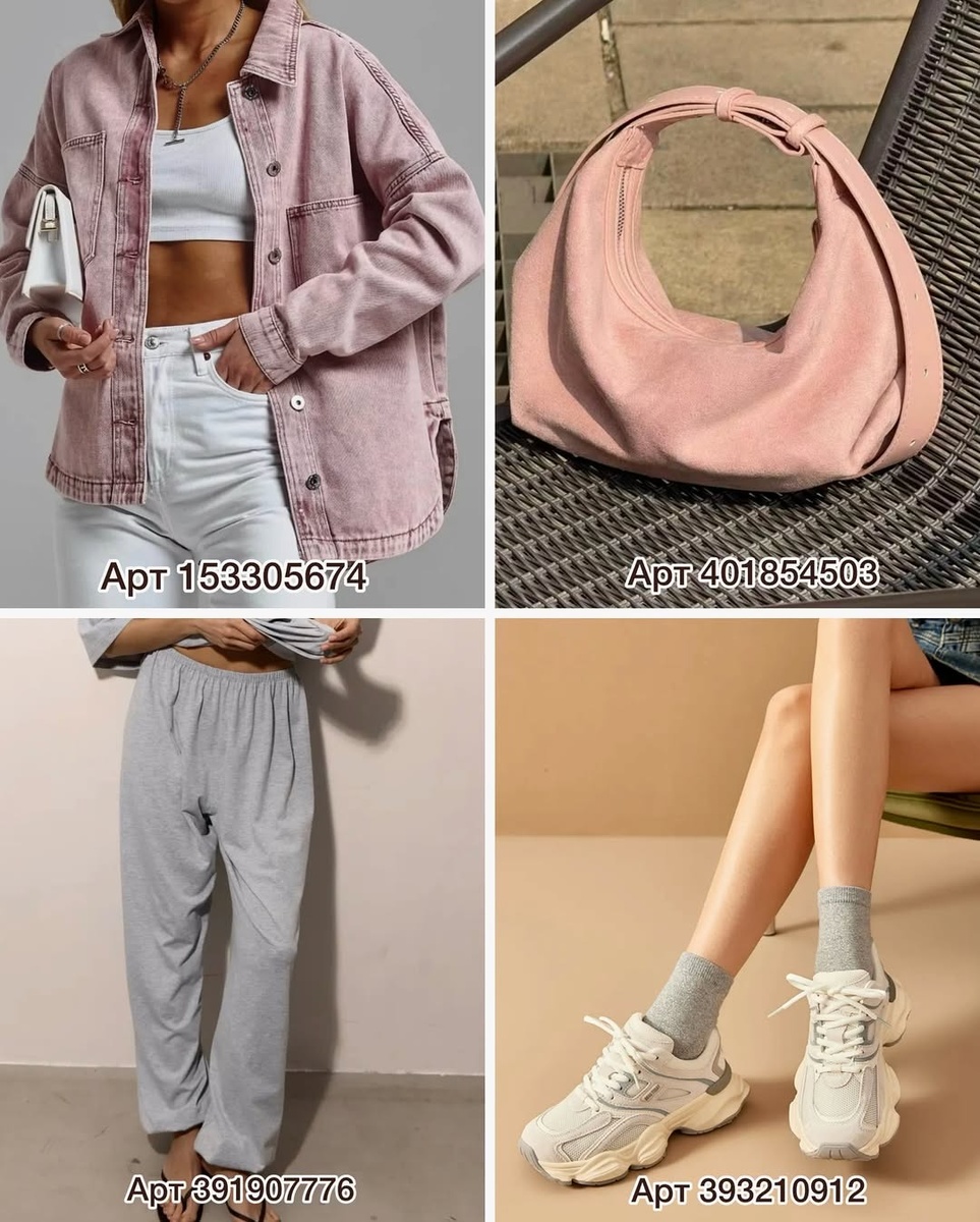 - Casual-розовый: джекет 153305674 + джоггеры 391907776 + кроссовки 393210912 + хобо 401854503.