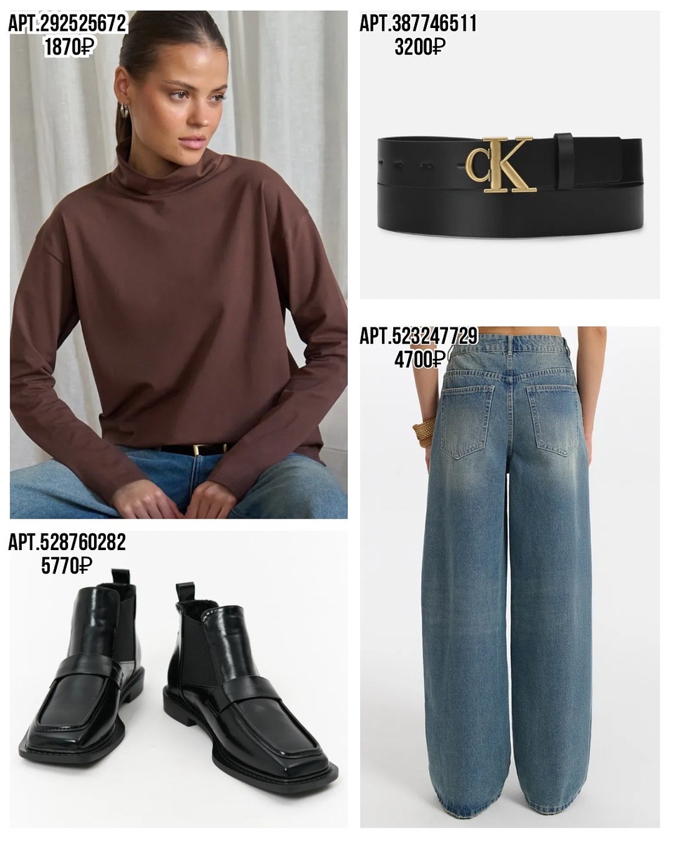 - Алый верх 391726377 + джинсы 523247729 + лоферы 528760282 — дерзкий casual с французским настроением.