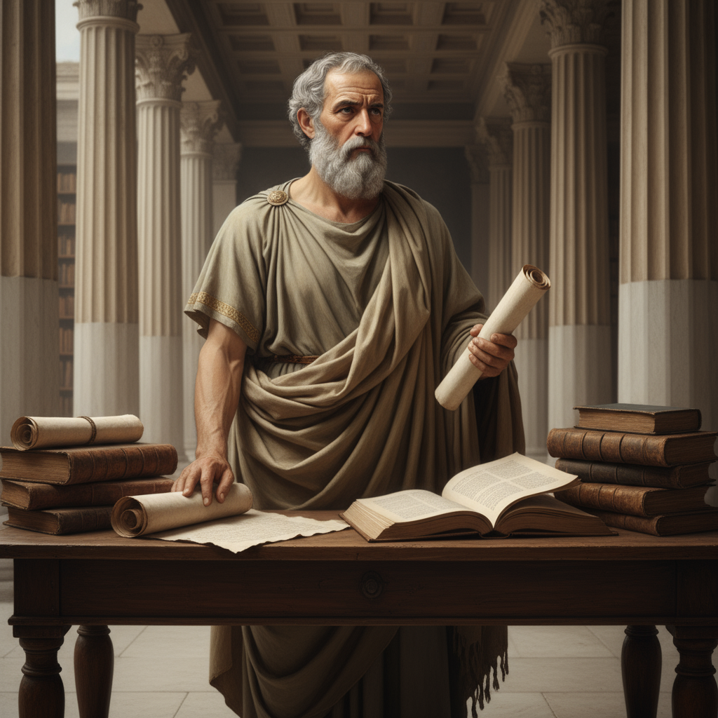 Аристотель — один из величайших мыслителей Древней Греции, основатель множества наук и целых направлений философии. Он родился в 384 году до н.э. в городе Стагира, учился у Платона, а позднее сам стал учителем знаменитого Александра Македонского. Аристотель оставил богатое наследие, оказывающее огромное влияние на европейскую и мировую культуру до сих пор. Он интересовался практически всеми сторонами жизни: философией, логикой, риторикой, политикой, физикой, биологией, этикой, поэтикой. Аристотель первым систематизировал знания, разделив их по областям, и ввёл множество научных терминов, которые используются и сегодня. В философии он разработал учение о «золотой середине», рассматривая добродетель как меру между крайностями. Он считал, что всё в природе имеет свою цель, а человек стремится к счастью через разумную и нравственную жизнь. В науке Аристотель заложил основы логики, определил категории бытия, описал принципы классификации животных и растений, предложил ранний вариант научног