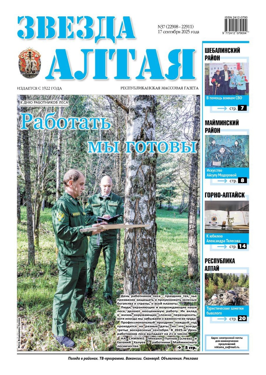 ⭐️Свежий номер «Звезды Алтая» уже поступил в продажу! 🔹В нашем регионе завершилось трехдневное голосование на довыборах, проходившее с 12 по 14 сентября. Об итогах - уже в номере. 🔹Заслуженному работнику физической культуры и спорта Российской Федерации, Президенту Олимпийского совета Республики Алтай Александру Телесову исполнилось 60. Читате репортаж с юбилейной встречи, состоявшейся в Национальном музее им. А.В. Анохина. 🔹Навсегда остались в памяти земляков. О артистах театра Горного Алтая, воевавших на фронтах Великой Отечественной войны. 🔹Искусствовед, учёный, педагог. Друзьям коллеги Алексея Эдокова делятся о нем добрыми словами в канун его юбилея. 🗞В новом выпуске нашей газеты вы найдёте много интересной и актуальной информации! Спрашивайте «Звезду Алтая» магазинах города. Приобрести ее можно и непосредственно в редакции (Горно-Алтайск, ул. Чорос-Гуркина, 38)👍.