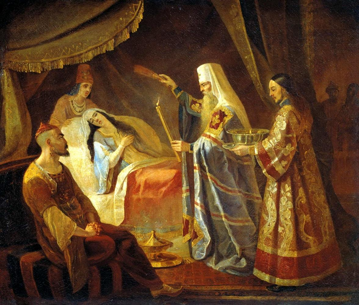 И тут случилось событие, которое превратило митрополита Алексия в одну из ключевых фигур той эпохи. Осенью 1356 года тяжело заболела всемогущая ханша Тайдула. У неё отказали глаза, она практически ослепла. Никакие лекари не могли ей помочь. И тогда она, будучи мусульманкой, пожелала, чтобы лечить её приехал своими молитвами далёкий московский митрополит Алексий. Слава о его мудрости и святости дошла и до степей. Отказаться было невозможно. Алексий, понимая, что на карту поставлено всё, отправился в Сарай. И там произошло то, что летописи называют чудом. После молитв Алексия зрение к ханше вернулось. Было ли это божественное вмешательство, искусная психотерапия или просто удачное совпадение, мы уже не узнаем. Но для всех это было чудо. Тайдула была спасена, а авторитет Алексия взлетел до небес. Однако не успел он насладиться триумфом, как в Орде снова запахло кровью. Смертельно занемог сын Тайдулы, хан Джанибек. Его собственный наследник, Бердибек, не стал ждать и ускорил естественный ход событий. Взойдя на престол, он устроил тотальную зачистку. Опасаясь конкурентов, он устранил всех своих братьев и других чингизидов старших линий. Летопись сообщает, что даже его восьмимесячный брат не избежал ужасной участи, и его жизнь оборвалась от руки самого Бердибека. А вот свою бабушку, Тайдулу, он не тронул. Она осталась в почёте при любимом внуке.