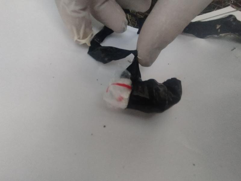 Женщина планировала забрать наркотик из тайника в окрестностях посёлка Фабричное. Координаты «схрона» ей прислал неизвестный через мессенджер «Телеграм». Тот самый пакетик с наркотиками | Фото: МВД России по ЛНР
