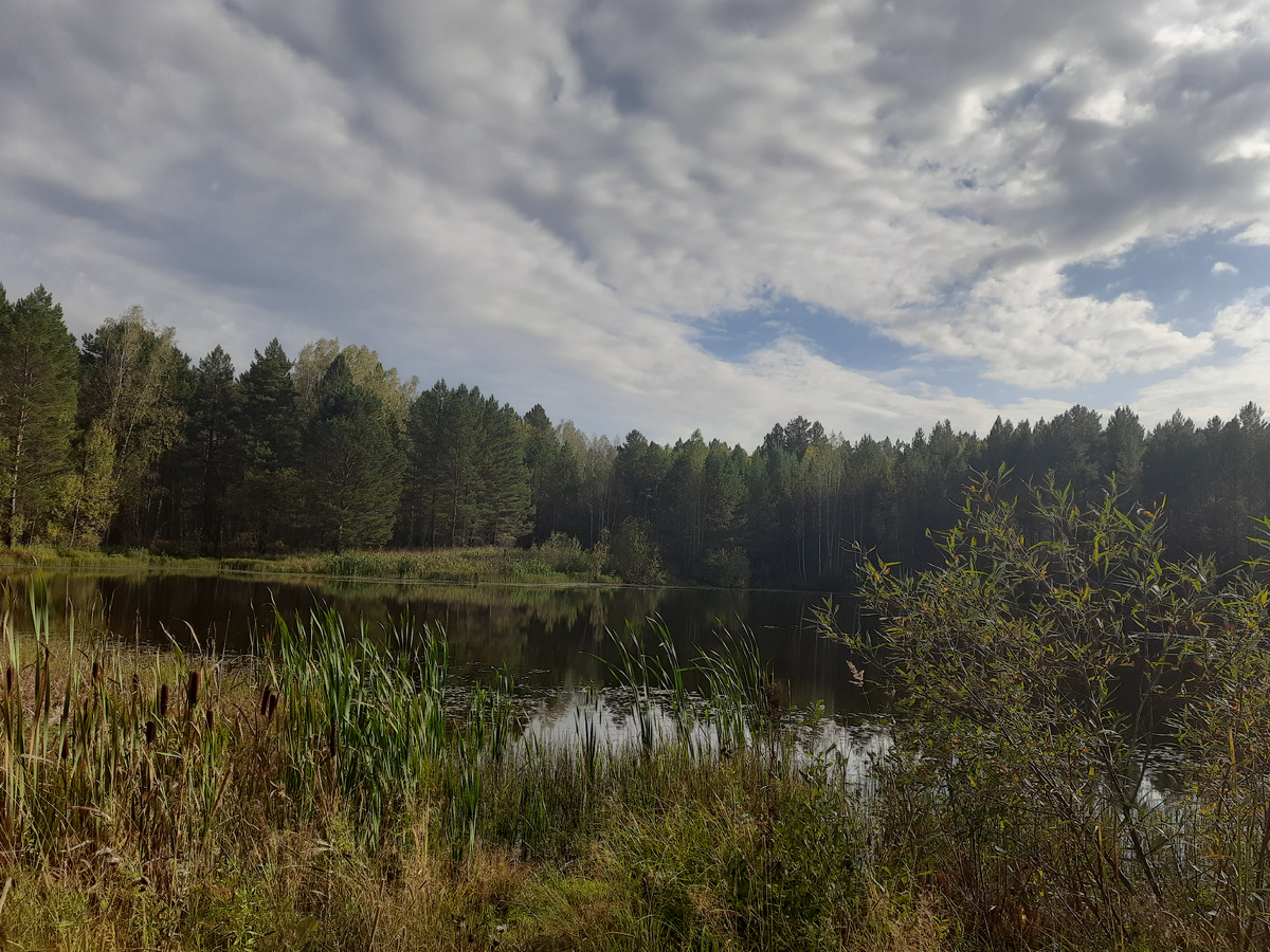 Осень так быстро меняет цвета в природе. Прогулка по берегу лесного озера оказалась живописной. Уже такие осенние краски. Опавшие листочки плавали, догоняя друг друга. Белые пушистые облака тонули в озере. Рогоз шумел от лёгкого дуновения ветерка. Трава уже не зелёная, а как будто припылёная золотом, которое искрится под лучами ещё яркого осеннего солнца. Видео можно посмотреть в ленте. Ps: на видео свист слышали? Сентябрь 2025 г. 📸 место съёмки: Большеулуйский район Красноярский край