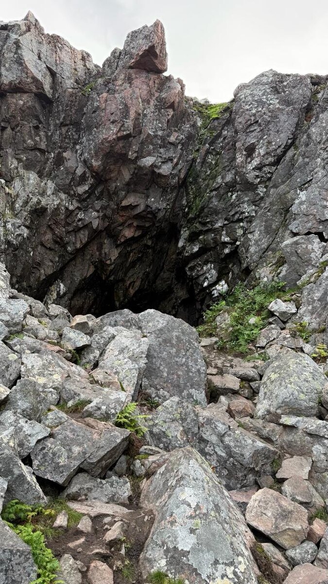 «Пещера дракона». Териберка, Мурманская область. Пещера, если можно так выразиться, больше напоминает грот. Внутри довольно атмосферно и мрачно. Нужно быть осторожным: потолок пещеры состоит из острых краёв камней, которые легко можно поранить голову. Внутри, на импровизированном постаменте, лежат три круглых, крупных камня, имитирующие яйца драконов. При богатой фантазии можно вообразить, что какой‑то Визерион вот‑вот прилетит и начнёт пыхать своим пламенем. #накраюземли