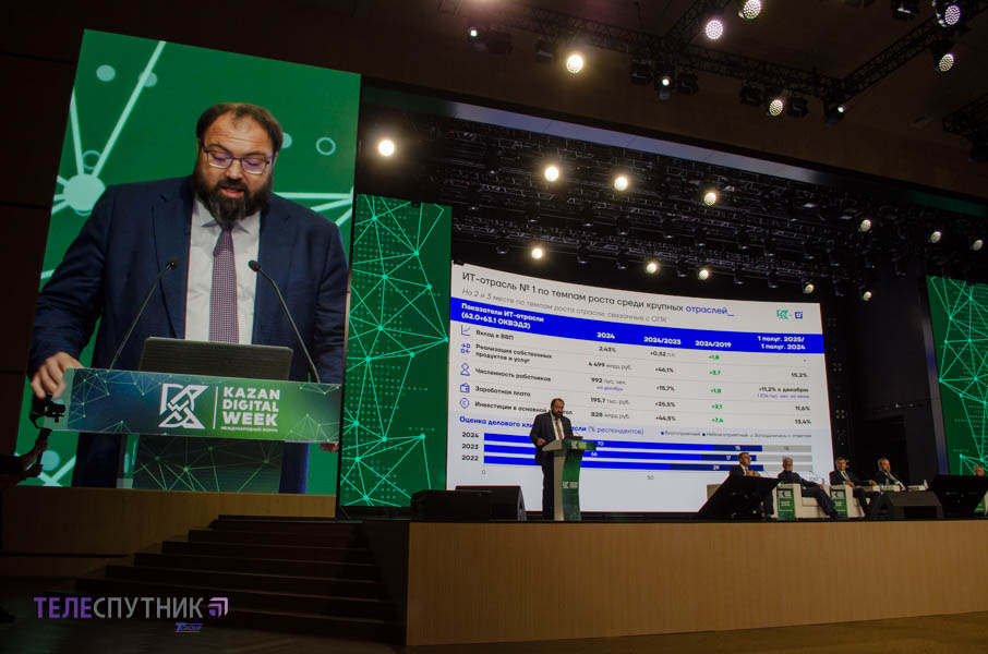 Инвестиции в основной капитал российской ИТ-отрасли в 2024 году выросли на 44,5% в сравнении с 2023 годом, до 828 млрд рублей, сообщил министр цифрового развития РФ Максут Шадаев на пленарном заседании Kazan Digital Week. По его оценкам, в первом полугодии 2025 года инвестиции выросли на 13,4% в сравнении с первым полугодием 2024 года. Как отметил министр, вклад ИТ-отрасли в ВВП страны в 2024 года составил 2,43% «Только за прошлый год наш вклад (ИТ-отрасли) в ВВП вырос на 0,3 процентных пункта. В этом году мы очень надеемся превысить показатель 2,5% доли отрасли в ВВП. Таким образом, в этом году отрасль по доле ВВП должна вырасти в 2 раза с 2019 года. И по этому показателю, по показателю роста вклада в ВВП, ИТ-отрасль за последние 5 лет лидирует среди всех крупных отраслей российской экономики. И это результат нашей совместной с вами работы», - сказал Шадаев. Согласно презентации министра, реализация услуг ИТ-отраслью в 2024 году выросла на 46,1%, до 4,499 трлн рублей (в первом полугод