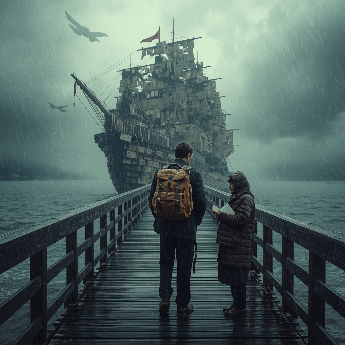 Его палуба — составлена из страниц старых дневников — тех, что писали люди, уезжавшие до него.