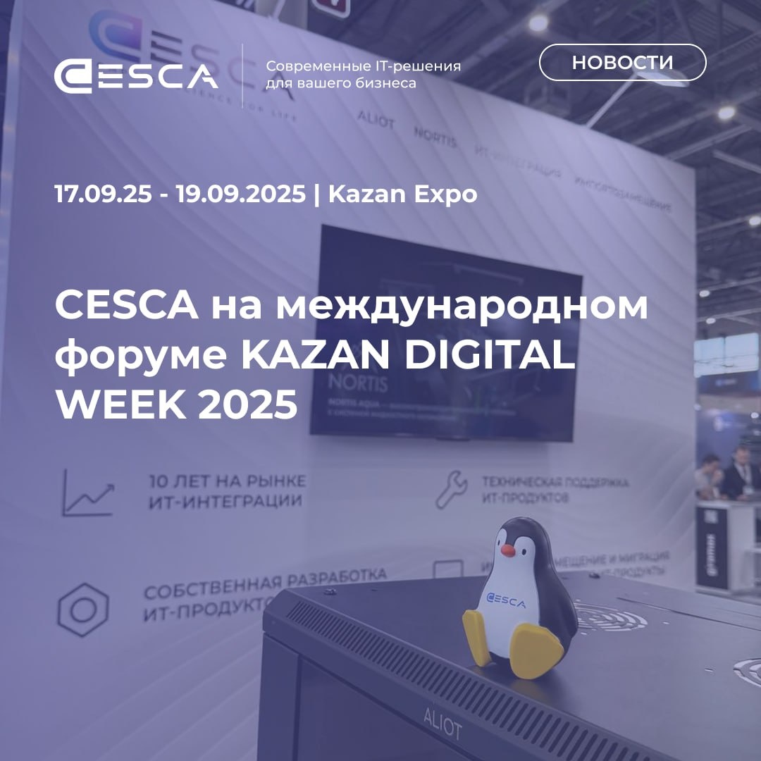KAZAN DIGITAL WEEK 2025 – начался! Приглашаем посетить стенд № 6.6 для знакомства с продуктами компании CESCA. Вы сможете пообщаться с ведущими экспертами и получить консультации по интересующим вопросам. Даты проведения форума: 17–19 сентября 2025 года. Адрес: г. Казань, выставочный центр «Kazan Expo», павильон №2, стенд № 6.6 Будем рады видеть вас среди гостей! Сайт | ВК | Дзен | РБК