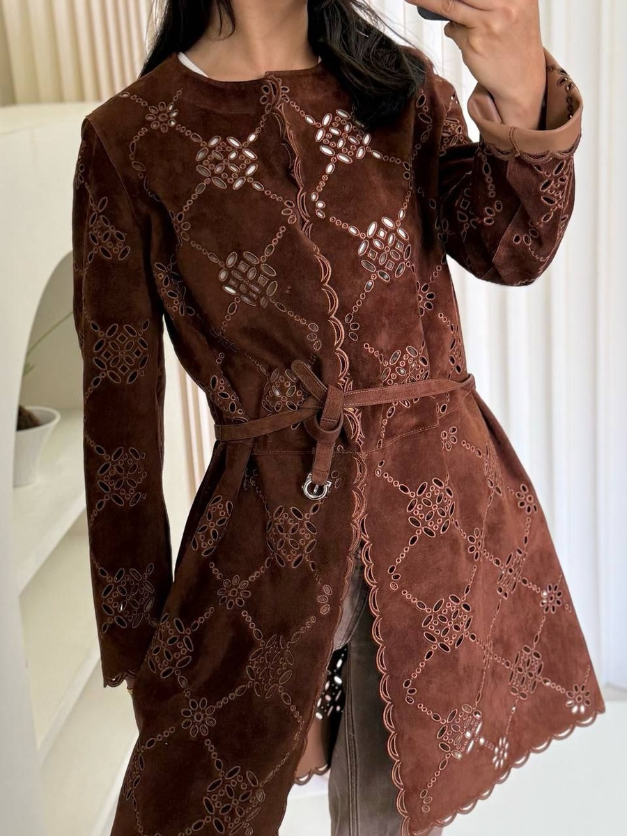 Красивый ажурный тренч из замши от #loropiana
