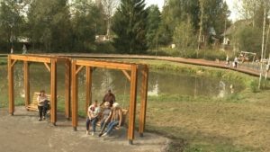 Когда более ста двадцати лет назад дачники из Санкт-Петербурга осваивали землю вдоль железной дороги, они оставили в поселке, который в 1914 году переименуют в Сусанино, место и под храм Казанской иконы Божией Матери, и под общественный парк. В советское время он оставался зоной отдыха. В мои молодые годы здесь был только один водоем, мы бегали здесь и купались, — Михаил Пархоменко, житель Сусанино. В 21-м веке водоем зарос, место стало неопрятным. И вот в 2025 году благодаря федеральной программе «Развитие комфортной городской среды» нацпроекта «Инфраструктура для жизни» и инициативе местного территориального общественного самоуправления пустырь за церковью превратился в ухоженный «Сусанинский парк». Работы обошлись в 15 млн рублей из федерального, областного и окружного бюджетов. Если посмотреть, очень хорошо сделали, приятно все-таки, были простые дорожки, а сделали очень хорошие, свет поставили, можно ходить, уже не заблудишься, не потеряешься, грибы здесь собирать ходят, ягоды, пр
