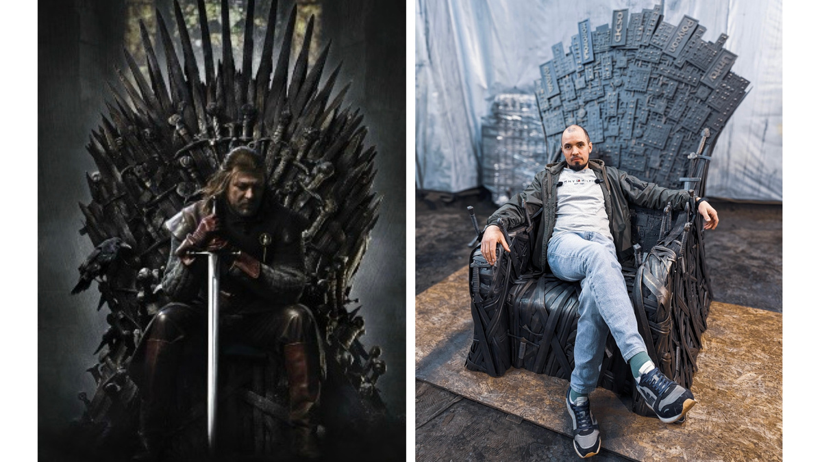Имиджевая реклама — дело хорошее и нужное. И с этим согласна одна крупная инжиниринговая IT-компания из Петербурга. Поэтому и придумала крутую идею для привлечения внимания на профильных выставках. Вот такой трон. По мотивам железного трона Семи Королевств из сериала (книги) «Игра престолов». Совместно с нашими дизайнерами были разработаны эскизы кованого трона из мечей и микросхем (IT-компания всё-таки). После согласования всех деталей на производство ушло месяца три. Формы мечей как у настоящих средневековых. И дизайнеры, и кузнецы с энтузиазмом изучали фотографии старых мечей, музейные экспонаты. Постоянно что-то обсуждали, спорили. Идей было море. Такой заказ каждому кузнецу в радость — почти все мечи разные, никакой рутины. Для каждого меча можно было привнести своё авторское видение. Если в большинстве наших проектов кузнецы работают по чёткому техническому заданию, то здесь была полная свобода для фантазий (ну или почти полная). По легенде для трона из «Игры престолов» понадобил