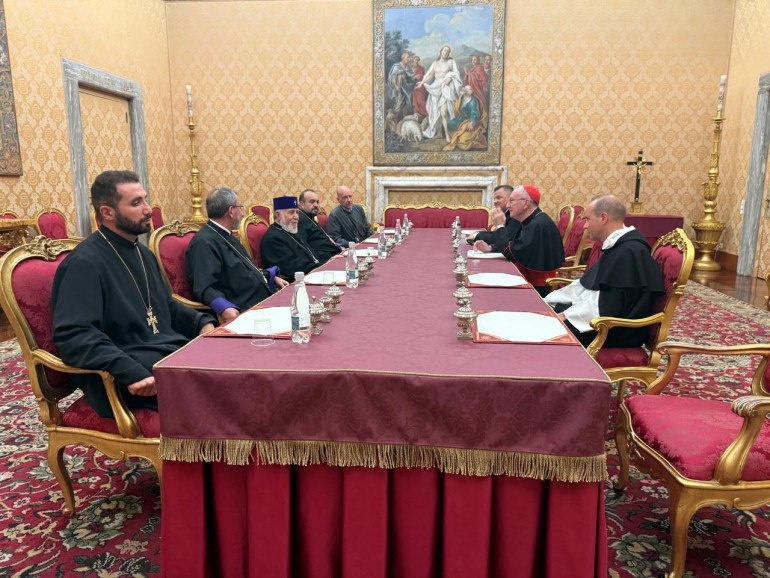 🗣Его Святейшество Верховный Патриарх и Католикос всех армян Гарегин II 15 и 16 сентября 2025 года в ходе официального визита в Ватикан встретился с несколькими кардиналами, возглавляющими ряд структур в Ватикане. Об этом сообщают из информационного центра Святого Эчмиадзина.