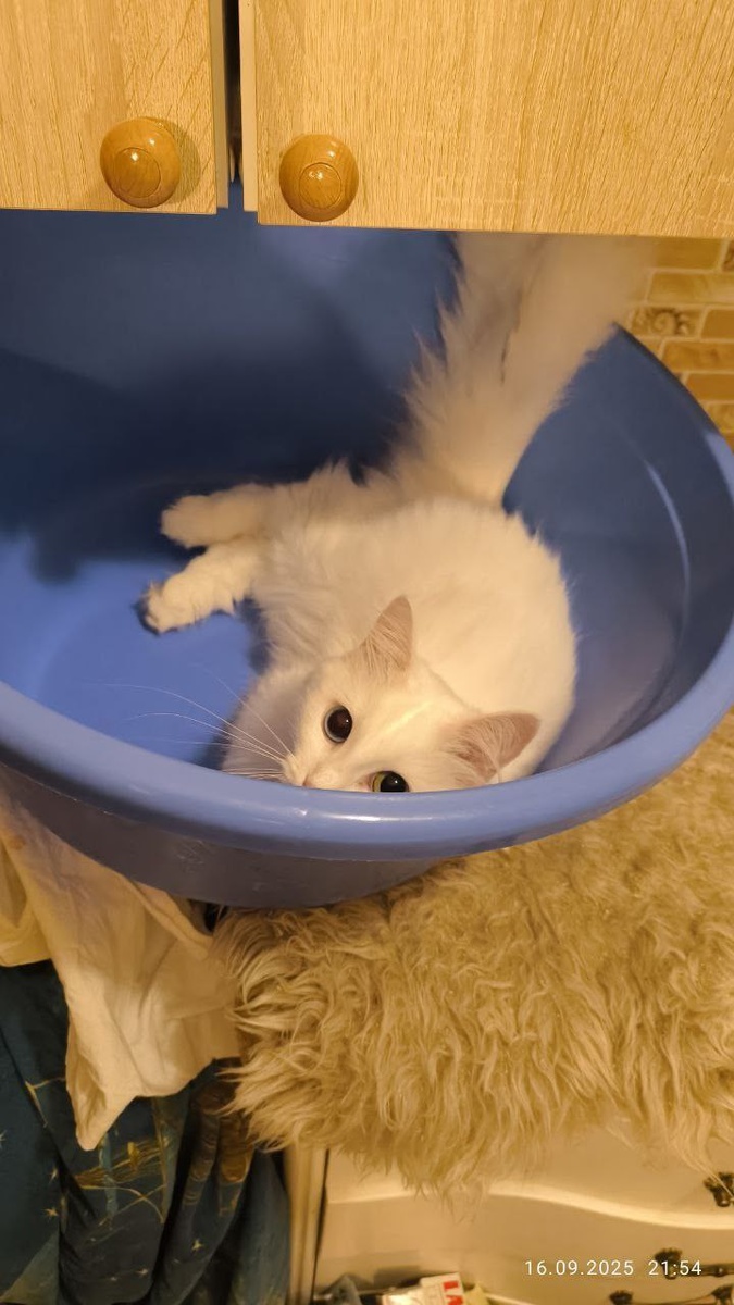 Вечерний фото привет -за ужином Ванилька, предпочитающая кататься по тазику вместо того, чтоб кушать, Белочка, не променяющая еду ни на что
