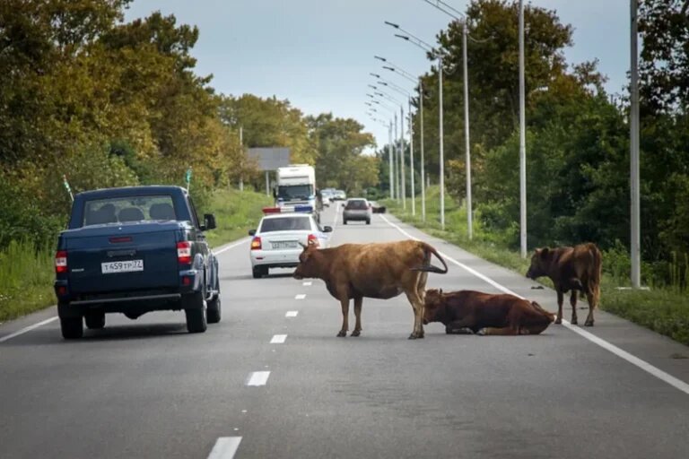 Минувшим сентябрьским вечером в Лазаревском районе Сочи произошло весьма серьезное ДТП. На дороге рядом с остановкой «Верхняя Шаумяновка» внедорожник сбил корову. Машина потеряла устойчивость и перевернулась на правый бок. Животное погибло на месте. На видео с места аварии видно, что ДТП произошло на дороге, где не должны находиться животные. Это может говорить о нарушении правил их содержания и выгула. В машине пострадавших нет. Из-за аварии движение в сторону Дагомыса сильно затруднилось, образовалась пробка. Этот случай подчеркивает важность дополнительных исследований безопасности дорожного движения, особенно при взаимодействии транспорта и животных.