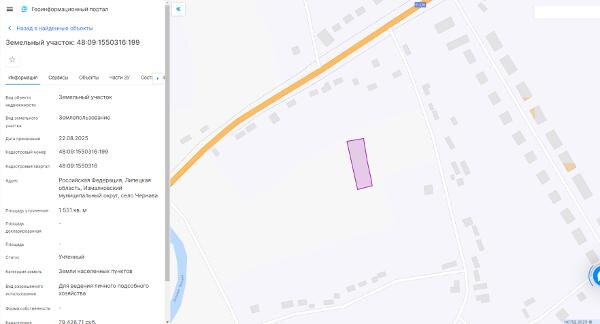 Название: Земельный участок из земель населенных пунктов с кадастровым номером: - 48:09:1550316:199 общей площадью 1551 кв