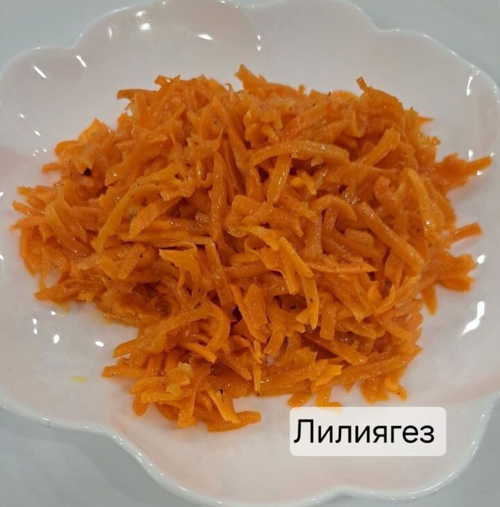 Лилия Әскаровадан кореяча кишер салаты рецепты Кишер-2 кг терка аша чыгарабыз Песок-5 аш к. Тоз-2 чәй калагы. Кориандр тоелгән-1ч. к. Төелмәгән кориандр да салсагыз була өстәп. Уксус 9% (алманыкы булса яхшы) 5-6 аш калагы. (кем ничек ярата) Әче борыч (минеке смесь перцев)- 0,5 ч. к. Сарымсак 5-6 тырнак. Боларны барысын бергә болгатырга һәм савытка салырга. Уртасында чокыр ясарга һәм ярты пакет для корейской моркови дигән приправа салырга, шуның өстенә кайнап торган майны агызырга. Майны түбәндәгечә ясыйм. Табага 1 баш суганны турыйм һәм 1 стакан рафинированный май салып суган кызарганчы кыздырырга, суганны сөзеп алырга, ә майны алда язып үткәнчә кишер өстенә агызырга. Барысын тагын болгатырга да суыткычка 5-6 сәгатькә озатабыз.