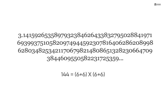 Сумма первых 144 цифр числа π равна 666 — числу, которое часто связывают с «числом зверя» Интересно, что 144 = (6+6) x (6+6