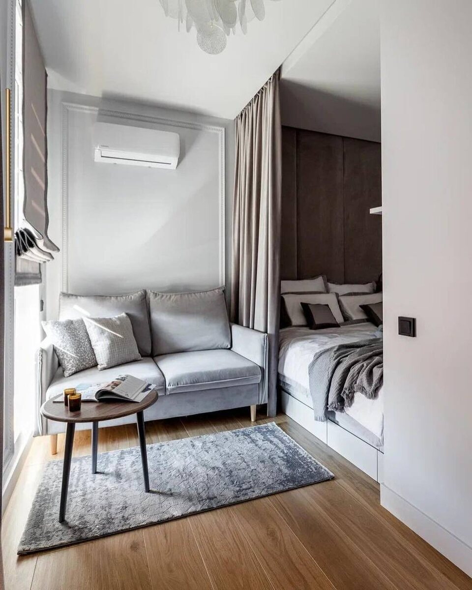 И вновь мы врываемся в ваши ленты с интересной «шторной» идеей! ☺️ Обладатели малогабаритных квартир и компактных апартаментов, берите скорее на заметку этот чудесный способ зонирования. 😉 Для реализации можно возвести дополнительную стену, а можно использовать большой и вместительный шкаф. Останется лишь занавесить спальную зону красивыми шторами в тон и наслаждаться уютом и атмосферой уединённости и комфорта. Кстати, при таком варианте можно ограничиться лёгким тюлем на окне, ведь от солнечных лучей во время сна будет спасать плотная штора-перегородка. 👍 👉 В нашем каталоге для такой задумки есть целая линейка штор Канвас и Канвас Колориум. Они обладают достаточной плотностью, приятной фактурой, драпируются в мягкие красивые складки и могут похвастаться большим ассортиментом оттенков. #идеидлядомаидачи #идеидлядома #уютвдоме #зонирование #зонированиеспальни #шторы #шторывспальню #шторыдляспальни #красивыешторы