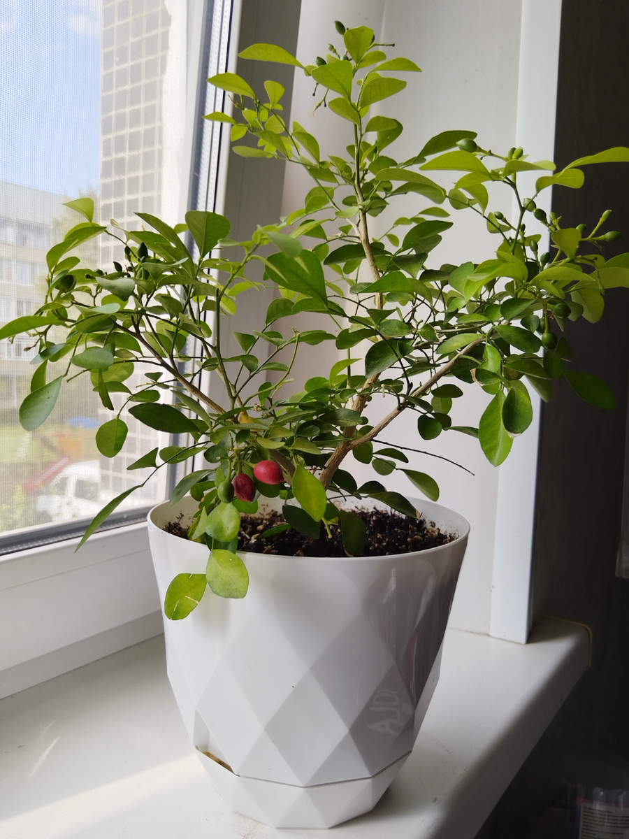 Но зачем? Куда их столько? Вот такие вопросы надоедали мне пока возилась с муррайей. Было время, когда я очень хотела вырастить свое красноплодное деревце, ощутить аромат белоснежных цветов, узнать вкус целебных ягод. Моя мечта осуществилась! Муррайя легко размножается семенами, а точнее косточками из ягод. От цветения до созревания плода проходит четыре месяца. В спелых ягодах косточка уже готова к посеву. Нужно снять мякоть. К стати, на мой вкус ягода совсем невкусная. Уж, не знаю на сколько эта суховатая и пресная мякоть полезная, чтобы ее съесть, но я ее выкидываю. Перед посевом косточки нужно хорошо отмыть, освобождая от мякоти. Убирается она легко. Вот и готов посевной материал. В этот момент и начали атаковать мысли, а зачем их вообще сажать. Мне достаточно одного растения, которым я несколько разочарована: постоянно цветет, но цветы держит до 2 суток и постоянно осыпается сухими лепестками. Радости мало, а мусора много. Продать можно только маленькие сеянцы по 200-300 рублей,