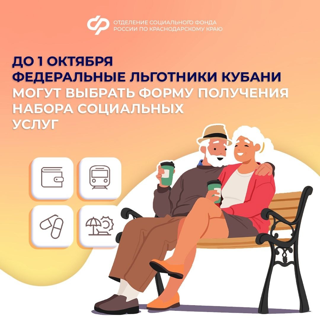 📌Право на получение набора социальных услуг (НСУ) предоставляется получателям ежемесячной денежной выплаты (ЕДВ). В него входит: 🟠бесплатный проезд на пригородном железнодорожном транспорте, а также на междугородном транспорте к месту лечения и обратно 🟠предоставление путевок на санаторно-курортное лечение для профилактики основных заболеваний 🟠обеспечение лекарственными препаратами для медицинского применения по рецептам, медицинскими изделиями по рецептам, специализированными продуктами лечебного питания для детей с инвалидностью 🩵НСУ можно получать в денежном эквиваленте или натуральной форме, подав соответствующее заявление до 1 октября. ❗️Ежегодно обновлять свой выбор не требуется: форма получения будет действовать до того, как вы не решите изменить ее. Изменения начнут действовать с января 2026 года. 😊Подать заявление можно: 🟠на портале госуслуг 🇷🇺 🟠в клиентских службах Отделения СФР по Краснодарскому краю 🟠в МФЦ 📎 В Краснодарском крае проживает 560 тысяч федера