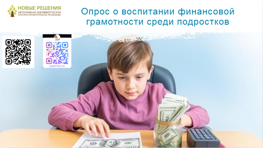 Приглашаем вас принять участие в опросе, посвященном вопросам воспитания финансовой грамотности среди подростков. Мы стремимся собрать мнения и опыт представителей образовательных учреждений и семей, чтобы разработать эффективные программы финансового просвещения молодежи и родителей. Ваш вклад крайне важен для формирования адекватных подходов к обучению подростков основам финансовой культуры, финансовому планированию и разумному обращению с деньгами. Результаты опроса будут использованы для улучшения образовательной среды и разработки рекомендаций, направленных на повышение уровня финансовой культуры школьников и оказания помощи родителям. Для участия в опросе перейдите по ссылке https://forms.gle/iRoN2txs9P59oAoo7 . Анкетирование займет всего несколько минут вашего времени, но принесет огромную пользу родителям и детям! Мы искренне благодарим вас за поддержку нашего проекта и надеемся на активное участие каждого заинтересованного педагога и родителя. Организаторы исследования: АНКПО