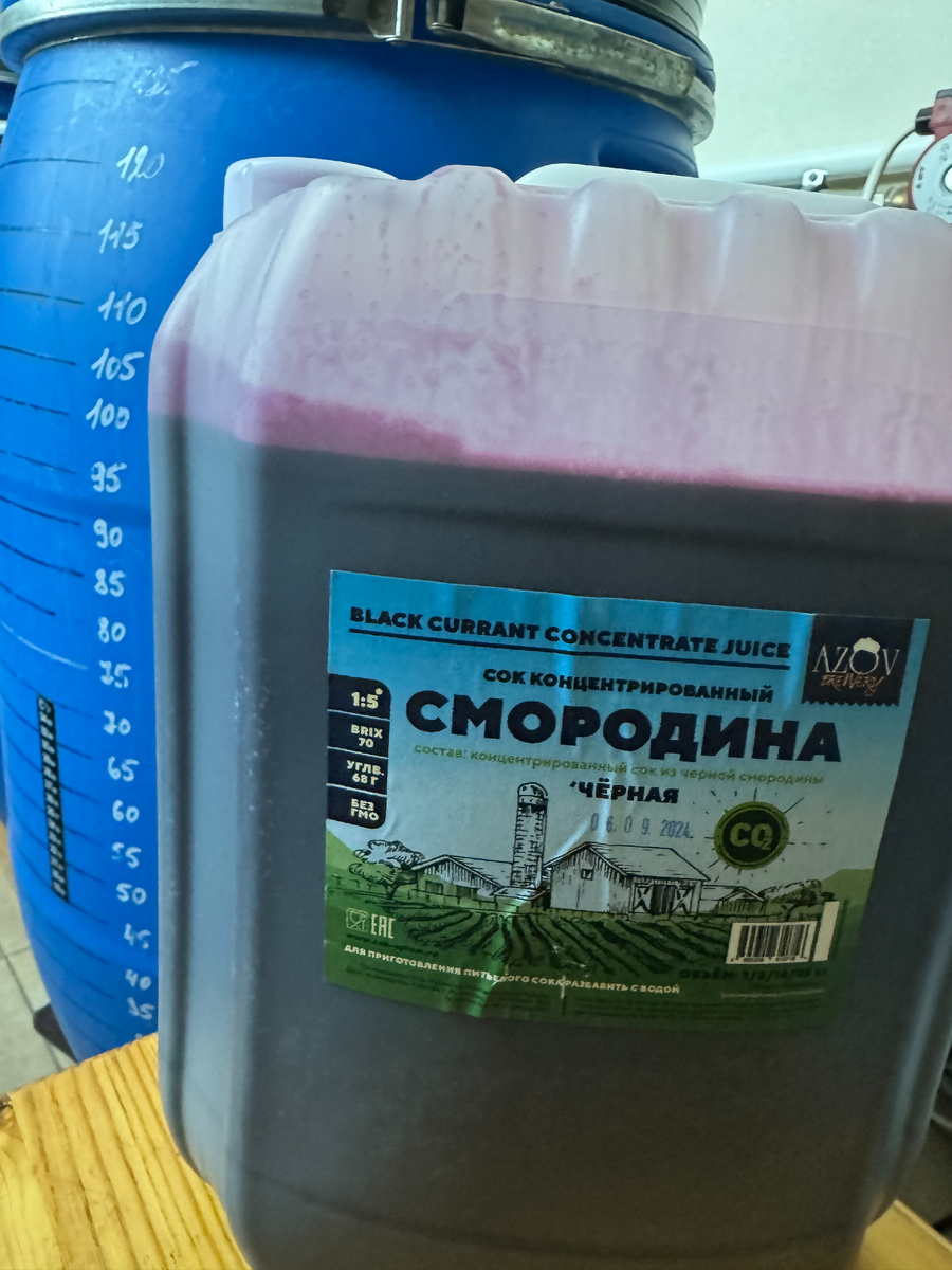Приветствую коллеги! В этом году птицы за ночь обнесли всю черную смородину. Вместо 25-30 литров ягоды осталось ровно 200 грамм. Предыдущая, на ягоде закончилась еще в 24 году и да-да, опять взгляд упал на концентрат. Начитавшись отзывов, решился взять концентрат от Трудовых будней АЗОВА а не от Волжской мануфактуре. Не делают они 14 кг. А от Трудовых будней АЗОВА по крайней мере, даже учитывая недоброд, продукт выходит не плохой (опыт яблоко и груша). Хотя абрикос разочаровал. Сразу скажу про впечатления готовым продуктом. Не очень доволен. Если сравнивать с «абсолютом», то да, 4 звезды можно вляпать, а если с ягодным, то и двух много. Следовательно - 3 достаточно. Запаха в готовом продукте практически нет, вкус на глотке приятный, фруктовый, средне насыщенный вкус черной смородины открывается на послевкусии. Послевкусие приятное и долгое. Но это на свежеразведённом. Если через 3-4 недели запах не проявится, а вкус не усилится оставлю 3 звезды, проявится и вернется подниму до 4. Тепе