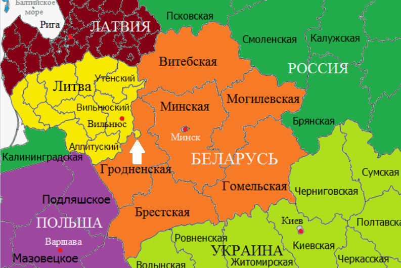 Если взглянуть на линию западной границы Беларуси, то можно увидеть литовский петушок, который вклинивается на территорию союзного нам государства. Его еще называют Девянишкский выступ или петля. Откуда? Докладываю. Вот, собственно посмотрите на карте. Обозначил выступ белой стрелкой. Начнем издалека. Сегодня, 17 сентября, в Беларуси отмечается День народного единства. Это молодой праздник, учрежденный А.Г. Лукашенко в 2021 году. Есть сведения, что этот день отмечался в СССР с 1940 по 1949 год, а потом был отменен в угоду нашему новому союзнику - социалистической Польше. Понятно, что полякам этот день, как серпом по кокошам. Ведь 17 сентября 1939 года Красная Армия начала свой польский поход, в результате которого исторические земли Советской Белоруссии (а точнее исторические земли Российской Империи) вернулись в родную гавань. До этого они были захвачены и отошли к Польше по условиям Рижского договора 1921 года. Помимо прочего, Красной Армией от оккупации Польши был освобожден и Ви