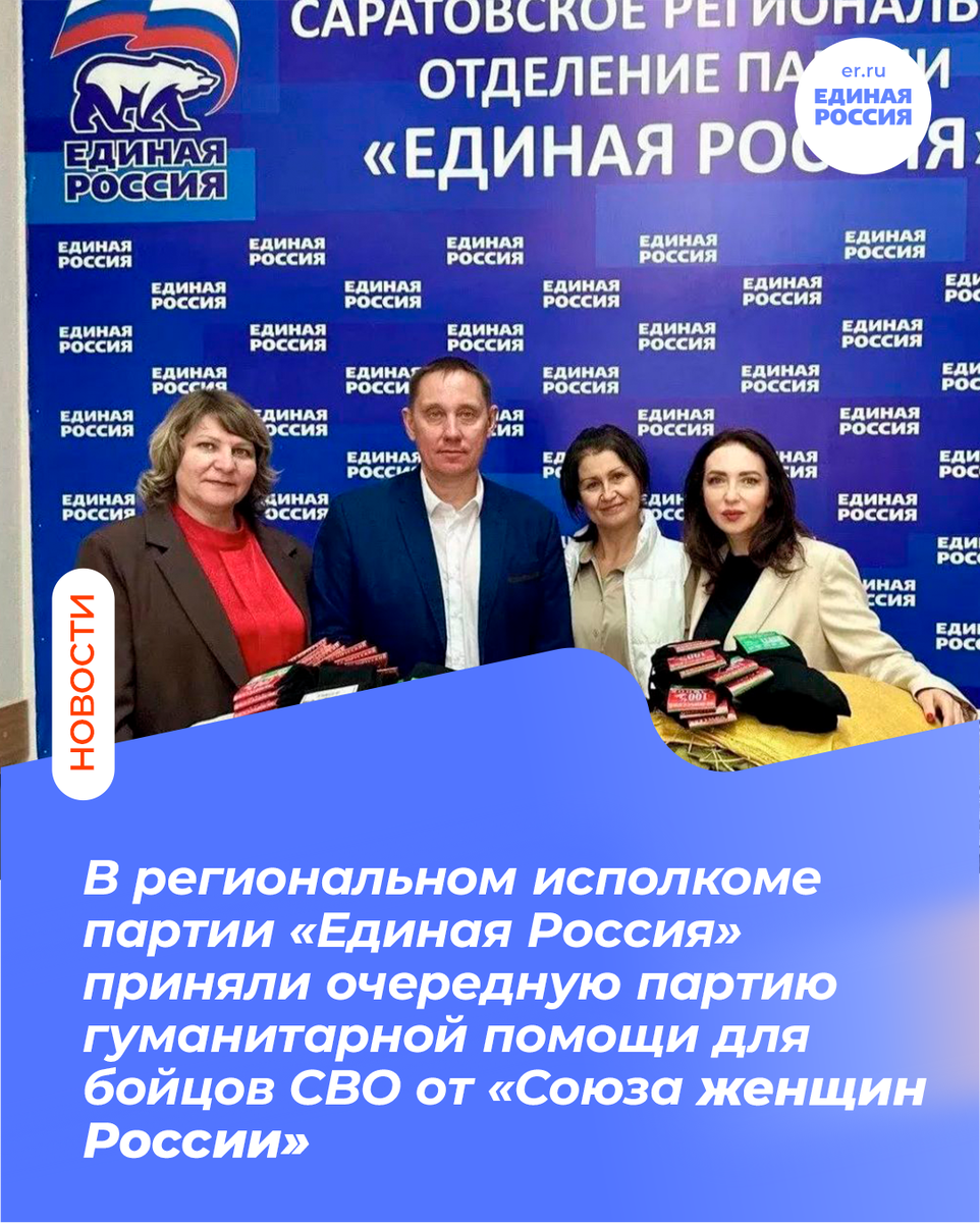 🙏🏻Председатель комитета по образованию и культуре Саратовской областной Думы, председатель регионального отделения «Союза женщин России» Юлия Литневская совместно с Советом женщин Питерского района передали гуманитарный груз для бойцов специальной военной операции.